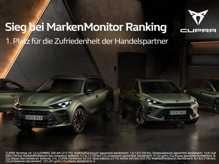 Der MarkenMonitor des IfA gilt seit über 25 Jahren als wichtiger Indikator für die Stabilität und Zukunftsfähigkeit der Vertriebsstrukturen in der Automobilbranche. Rund 1.100 Inhaber, Geschäftsführer und Führungskräfte aus dem deutschen Autohandel bewerteten Hersteller anhand von über 40 Kriterien – von der Produktqualität über Marketingstrategien bis hin zur digitalen Unterstützung. Cupra konnte sich hier nicht nur in der eigenen Kategorie, sondern auch im Gesamtranking aller Marken stark verbessern und belegt nun den