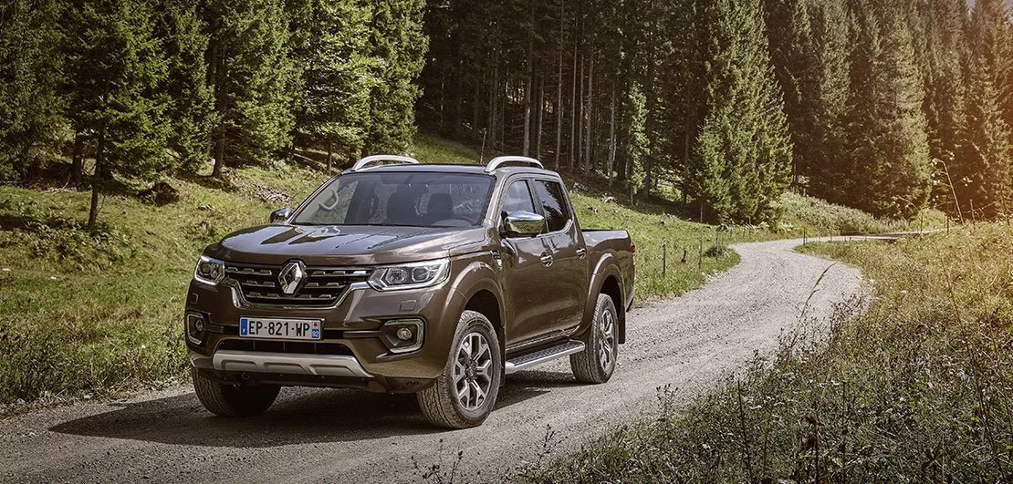 Mit 5,39 Meter Länge, 1,81 Meter Höhe und 1,85 Meter Breite entspricht der Alaskan dem Maßkonzept der Midsize-Pick-up-Klasse. Auch das Design folgt mit der Betonung von Kraft und Robustheit den Regeln des Pick-up-Segments. Kennzeichen sind der große Kühlergrill mit Chromeinsätzen und dem dominanten Renault Rhombus sowie die muskulös ausgeformte Motorhaube. Weiteres markentypisches Merkmal ist das C-förmige LED-Tagfahrlicht in der Topausstattung INTENS. Je nach Ausstattung sind auch die Hauptscheinwerfer in lichtstarker LED Pure Vision Technik ausgeführt.