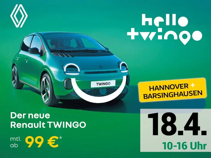 Wir und der neue Renault Twingo E-Tech freuen uns auf Ihren Besuch